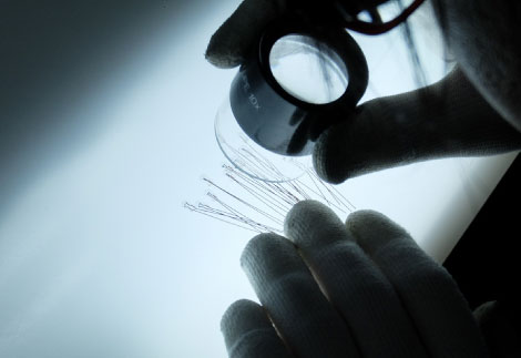 檢測(cè)員根據(jù)在超小型燈泡制造歷史中培育出的可靠地檢測(cè)技術(shù)進(jìn)行檢查。